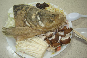 說起壽司吳,也是玉井地方一位響叮噹的人物,原本開店在玉井農會附近,叫一平壽司屋,約有50多年的歷史了,第二代吳清芳先生得了父親烹調美食的好功夫,所做的”沙鍋魚頭”很是出色,魚頭香酥,鍋底湯頭真是美味,是一道很道地口感的好湯頭。